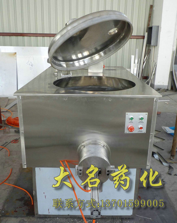 粉體物料與粘合劑在圓筒形容器中由底部混合漿充分混合成濕潤軟材,然后由側(cè)置的高速粉碎槳切割成均勻的濕顆粒。